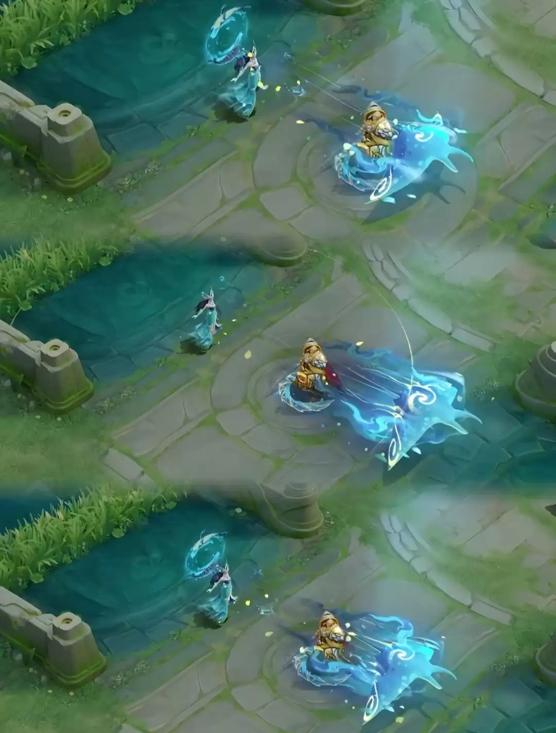 二技能·流光倾泻: 释放时,裹挟海水的珍珠、贝壳和海螺相继飞出,打击感十足。生成的护盾则如一层流动水幕,内部有波光流转,兼具防御与观赏性。