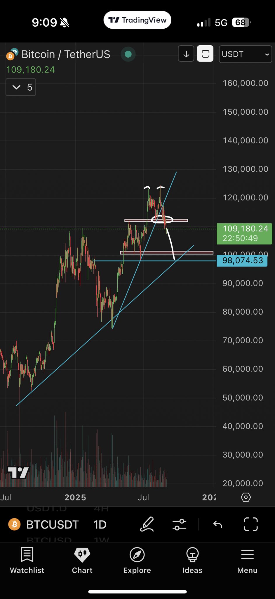 BTC/USDT日线图。来源:Roman/X(注:原文为“BTC/USDT日线图。来源:Roman/X”)