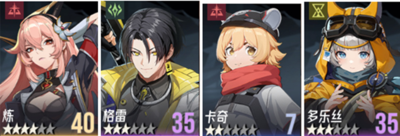 在游戏刚开始的时候,很多玩家们对于角色拥有的数量很少,那么在新手赠送的角色中,玩家们可以让格雷、炼、卡奇和多乐丝进行搭配,首先是在获取的时候非常的简单,能够让玩家们在前期就体验到队伍在游戏中的主要作用,而这一个阵容既有输出,也有辅助。