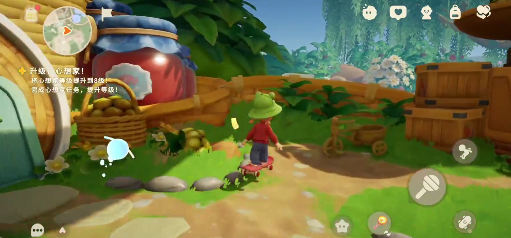 家园系统是本作的核心亮点之一。玩家可在专属庭院中自由布置桌椅、绿植、摆件等数百种装饰物件,打造独一无二的生活空间。特别值得一提的是,场景中的树木采用毛线团造型设计,打破传统建模逻辑,赋予整个世界更强的手工感与温暖氛围。此外,游戏支持多人联机协作模式:既可邀请好友进入自家小屋共度闲暇时光,也能组队挑战专属副本任务,在合作中深化社交联结。