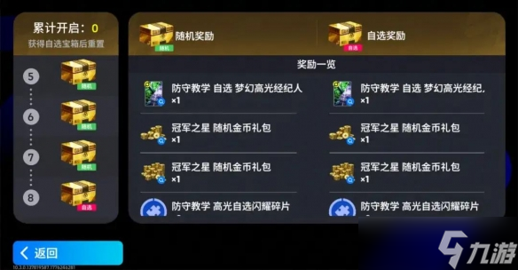 ③ 掀开道具卡片也有机会获得幸运星,累计获得15颗【幸运星】即可开启宝箱,获得【防守教学 自选 梦幻高光经纪人】*1、【球星卡包次数】*1、【冠军之星 随机金币礼包】*1 或【防守教学 高光自选闪耀碎片】*2 等奖励。累计开启8次宝箱,还可以获得宝箱自选奖励!