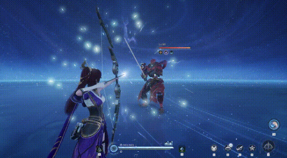 一技能渡灵之箭就是核心的输出技能,在开启之后,马上就会进入到长弓的状态中。这一个技能还会消耗渡灵剑,然后针对目标造成很稳定的伤害。连续射击时,射击的速度就会逐步的提升,会有一种越打越猛的优势。在暴击之后还会额外的射出箭,然后自动的追击附近的敌人,清理怪物的效率,还有团战的压制力,就可以进入到大幅度提升的阶段。第2个技能还会有伤害以及控制,射出箭矢之后就可以针对敌方路径上的敌人造成伤害,并且还会有击退以及击飞的效果。