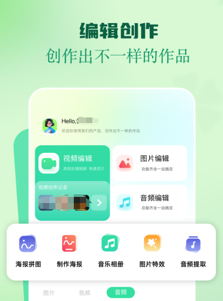 功能模块全面且交互友好,搭载AI智能抠像技术,可快速分离人物主体并更换背景;内置海量分类贴纸、动态文字样式及全风格滤镜(含可爱风、简约风、国风等),支持关键帧动画设置,使图文元素具备运动轨迹与节奏感;背景音乐库持续更新,紧贴流行趋势。