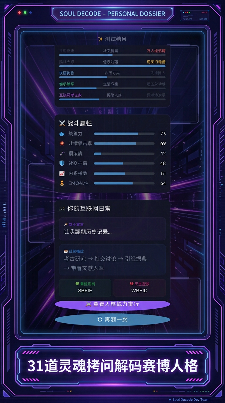 31道灵魂拷问,5大维度,16种赛博人格,解码你的数字灵魂!