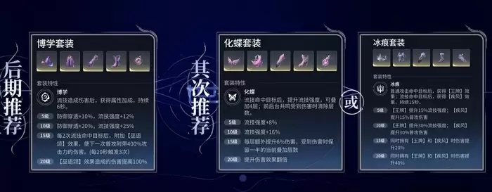 装备搭配方面,前期推荐斗士套,兼顾物理攻击、暴击率与流技伤害加成;中后期可切换博学套,进一步提升流技强度、穿透属性,并触发“每2次流技命中,下一次普攻增强”的被动效果,与东方曜高频技能释放特性高度契合。化蝶套与冰痕套可视战局需求作为补充选择。铭文配置推荐6强攻、6鹰眼、6隐匿或夺萃组合,以强化流技倍率、穿透与基础输出能力。