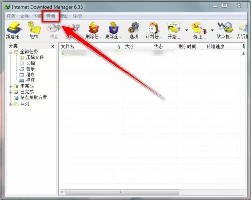启动IDM后,注意窗口顶部的菜单栏。找到“查看”这个选项,用鼠标点击它。