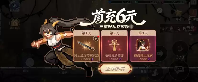 - 第一天:可得20万灵魂石加骑士传说武器。