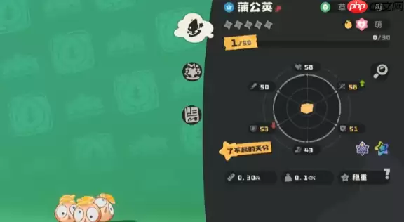 蒲公英娃娃是一只典型的双属性精灵。它的整体属性分布相当均衡,没有明显短板。