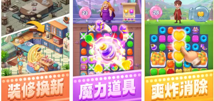 以魔幻家居装修为叙事主线的创新三消产品,将传统消除逻辑与房间装饰进度深度绑定。每完成一组连消,即可解锁新家具、壁纸或装饰道具,强化目标感与成就感。场景配色明快,音效清脆富有节奏感,适合追求温馨氛围与轻度目标驱动的玩家群体。