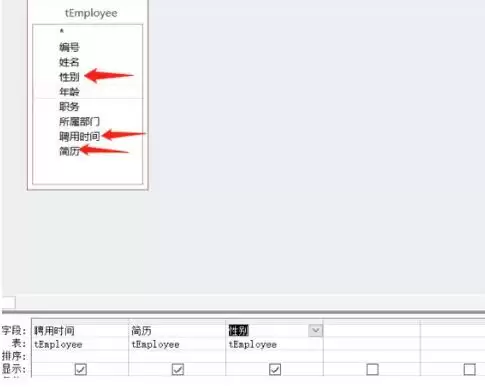开始设定删除条件。从上方字段列表中,依次双击你需要筛选的字段,例如“聘用时间”、“性别”和“简历”,把它们添加到设计网格中。这样,筛选条件就有了落脚点。