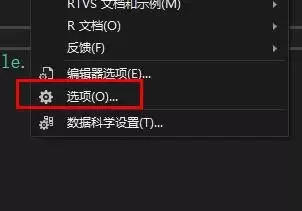 在弹出的下拉菜单中,找到并点击“选项”。绝大多数深层次的IDE设置都由此进入。