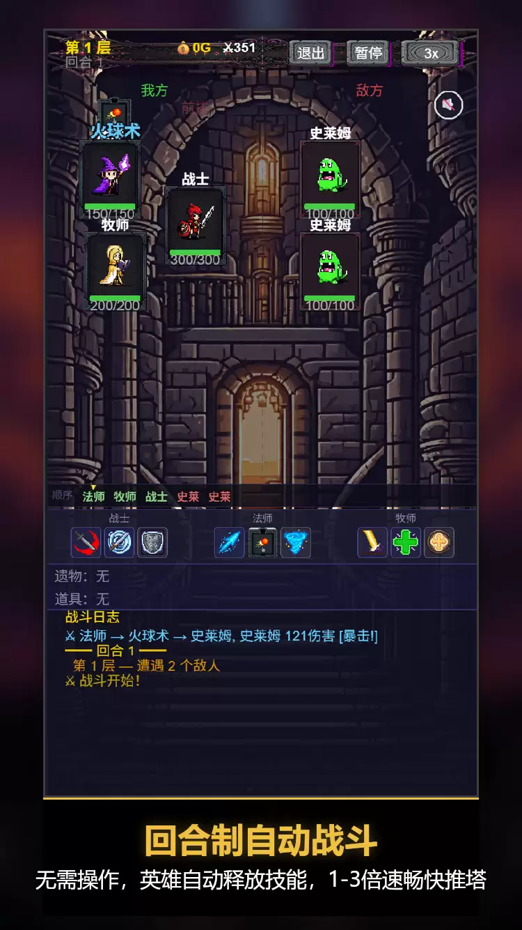杀戮尖塔太尖了?试试这座钝的。《杀戮不尖塔》,一款致敬经典的 Roguelike 自动战斗爬塔小游戏。选 3 个人组队,一路往上爬,收集遗物、攒 Build——通勤路上刷两把,午休来一局,8-15 分钟就是一段完整冒险。· 单手极简操作 — 选人、选奖励,剩下的小队自己搞定· 6 职业自由搭配 — 6 选 3 共 20 种组合,每个职业自带专属被动· 40 件遗物 + 诅咒遗物 — 强力增益还是双刃剑?贪心有代价· 14 种道具随战生效 — 传说级"处刑之刃"了解一下· 6 种精英词缀 — 狂暴、坚固、迅捷、再生、反弹、吸血,小怪也能教你做人· 永久升级树 66 级 — 越挫越强,局外成长让下一局更有底气· 20+ 随机事件 — 同一阵容打两遍,体验完全不同7 个 BOSS 从第 10 层蹲到第 70 层,一个比一个不讲武德。前 10 层你觉得自己天下无敌,30 层开始怀疑人生,70 层——建议先写好遗书。每天 7 种挑战轮换,排行榜上见真章。不服?来爬。塔是钝的,但你的策略可以很锐利。来爬一局?