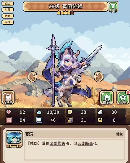 第三个给大家推荐的叫做军团统领,很多玩家也会称呼她为人马,在前战士职业的效果当中,她的能力也是可以通过给我方队友带来生命恢复,然后再施加鼓舞效果的,所以她目前可以选的流派也是比较多的,当前在拉条的能力效果当中其实比较推荐大家去用,而且在达到满星的情况下,军团统领还可以通过这里优先行动的一个机制来面对一些比较难的关卡,虽然是作为战士职业当中的一类泛用型角色,但是强度没有提升起来,也就是星级不够高之前,她其实也是可以当做一个辅助输出用,装备后期在可选的范围上面相对于其他的角色来说比较多,所以在阵容适配度上面也会比较高,关键是玩人马的话,不管是前期还是后期,带来的发挥强度一般都不会受到其他对手的限制。
