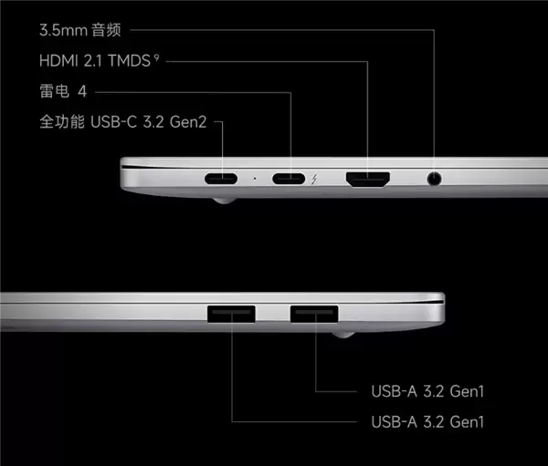 接口涵盖雷电4、全功能USB-C、HDMI 2.1、USB-A及3.5mm音频口。