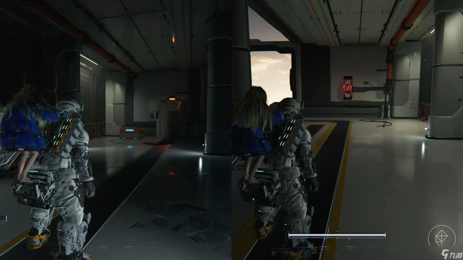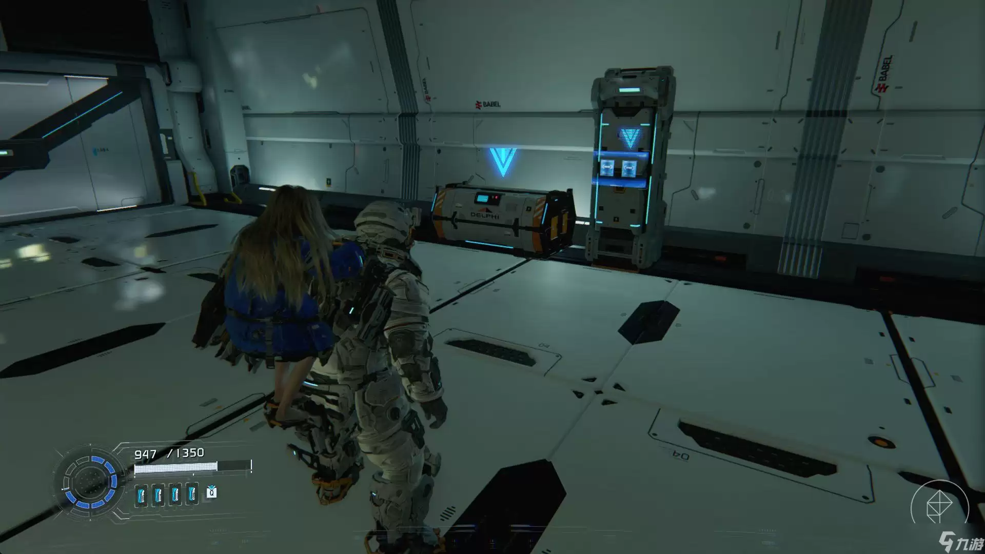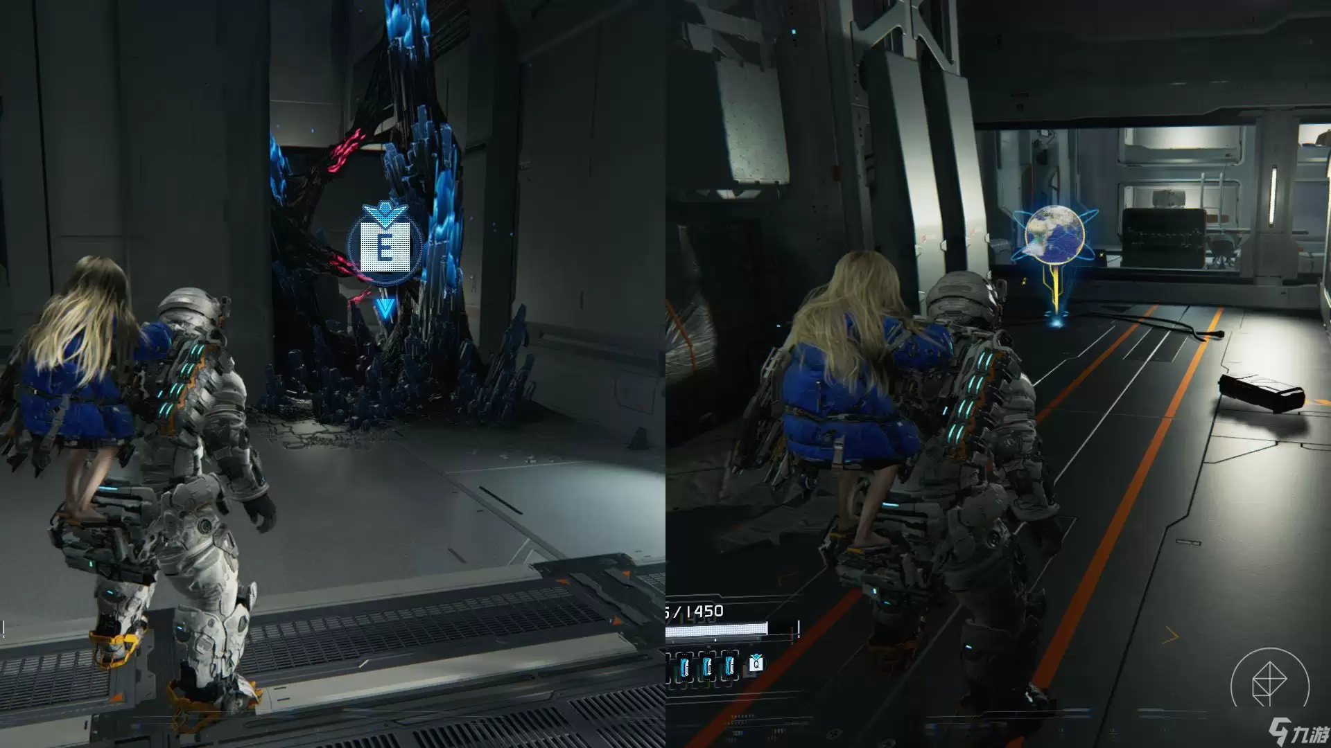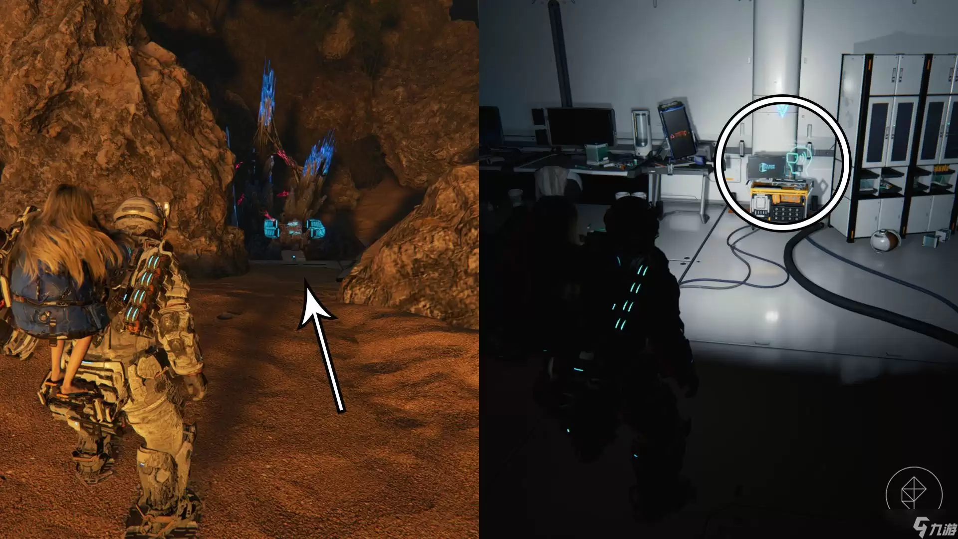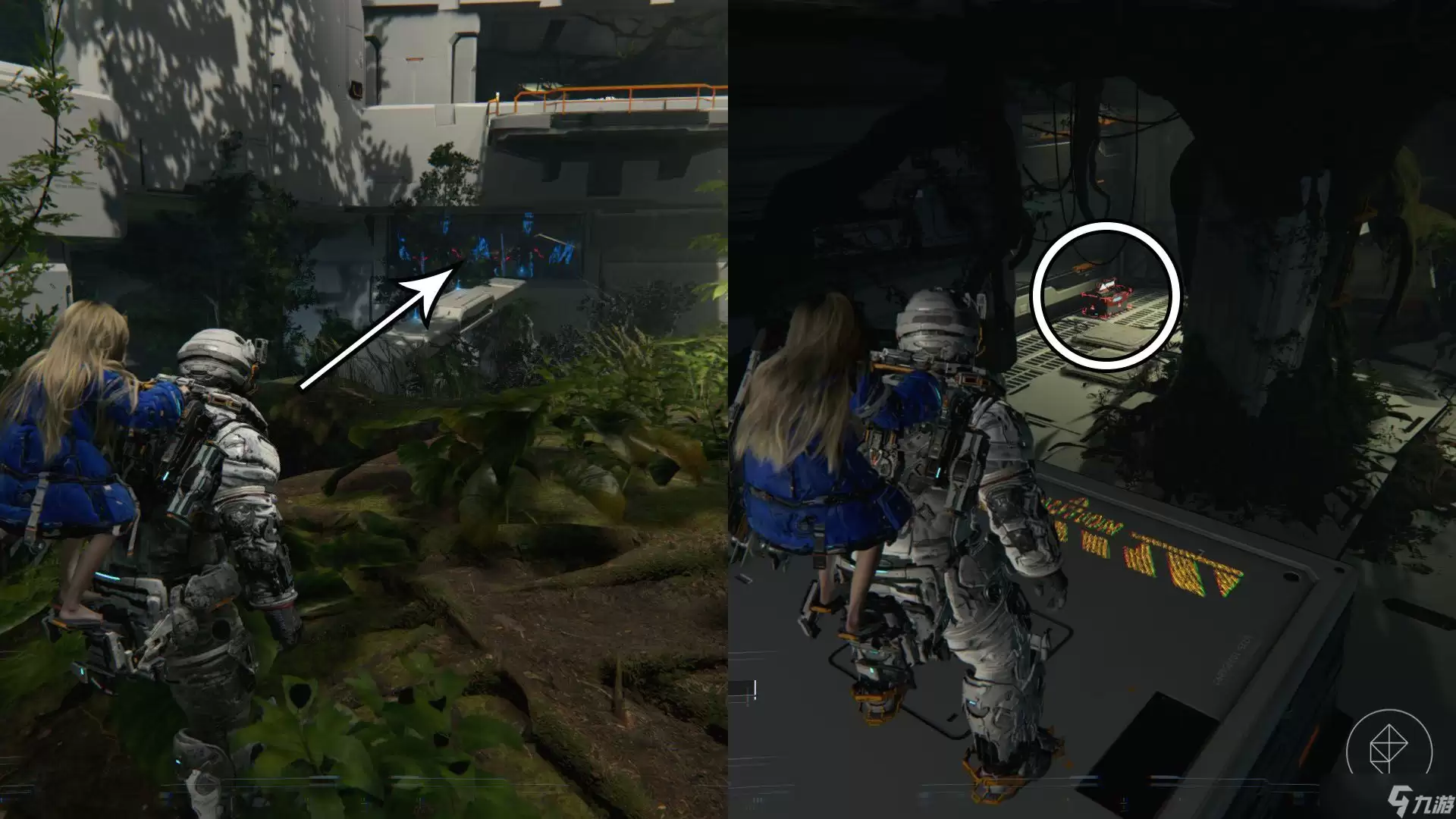 回到走廊,沿门左侧的路径走以获取升级组件。进入室内触发简短动画。向右转找到逃生舱口和一道红色大门。解锁舱口可回避难所存档,或者直接解锁红色大门进入。