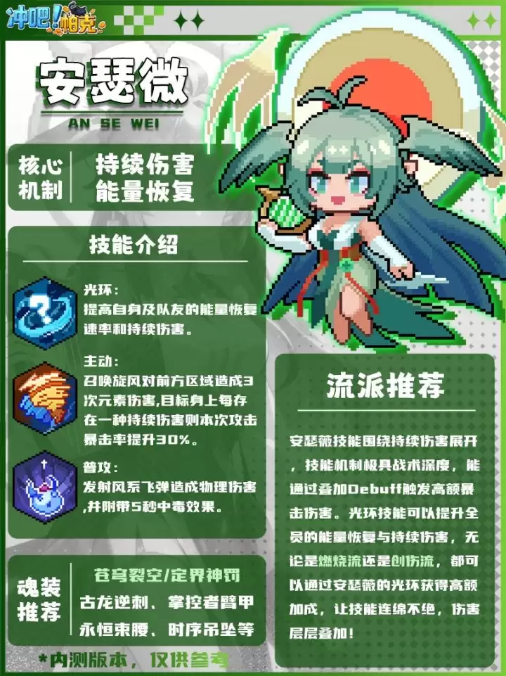 安瑟薇的技能设计完全围绕“持续伤害”展开,战术思路明确: