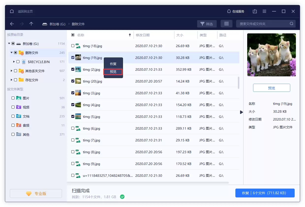 扫描完成后,你可以通过双击文件或右键选择“预览”来查看文件内容。