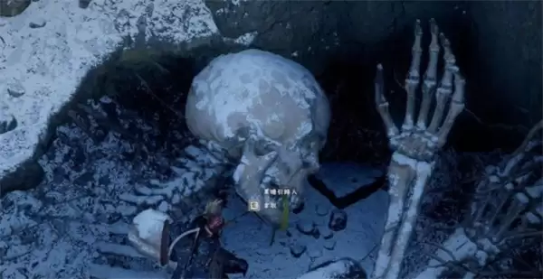 抵达巨大骷髅处后,目标就在它的嘴部。大胆靠近并仔细搜寻,你就能在骷髅的口中直接拾取到“黑暗引路人”。