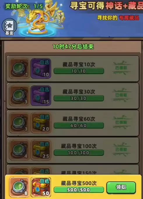 每次寻宝都像开启未知盲盒,可能爆出惊喜。游戏设有保底机制:每抽满20次,就有机会获得神话或传说级极品。当然,抽到黄色品质的常规藏品也很常见。