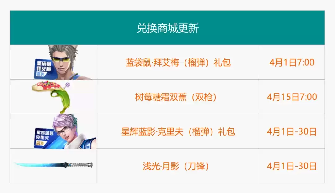 《枪神纪》四月活动丨兑换商城更新榴弹角色礼包