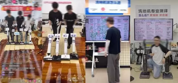 当前洗地机测评直播中常见的虚假测评主要有两种类型:一种是“暴力测评”,通过人为调整手法让主推产品“胜出”。例如,故意给非主推型号留低电量,导致其滚刷转速变慢;或者拆掉滤芯、用硬物堵塞吸污口,使竞品表现失常;甚至利用化学试剂制造“去污奇迹”——在主推型号清水箱中加入维C,而在污渍中使用碘伏,两者相遇发生化学反应,视觉上产生“瞬间洁净”的假象。另一种是“小黑板测评”,主播全程只靠话术讲解和参数对比,脱离真实使用场景,通过拉踩其他品牌、对比不同型号来诱导消费者购买佣金更高的产品。这些测评看似专业,实则缺乏统一标准和真实数据支撑,严重误导消费者。洗地机质量参差不齐,测评真假难辨,消费者在眼花缭乱的直播话术面前,往往难以做出理性判断。