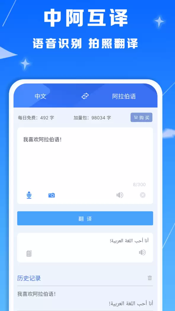 深度聚焦中阿双语场景,内置逾60万条专业词条,覆盖日常会话、工程技术、宗教文化及方言俚语等多维度表达。界面语言支持中文、英语、阿拉伯语三语自由切换,兼顾母语为不同语种的用户习惯。词典模块集成《阿拉伯语汉语词典》《新编阿拉伯语教程》等权威出版物数据,释义详实,标注词性、常见搭配及真实语境例句。在线翻译引擎基于最新一代神经机器翻译架构,生成译文语法严谨、语序自然、符合目标语表达惯性。