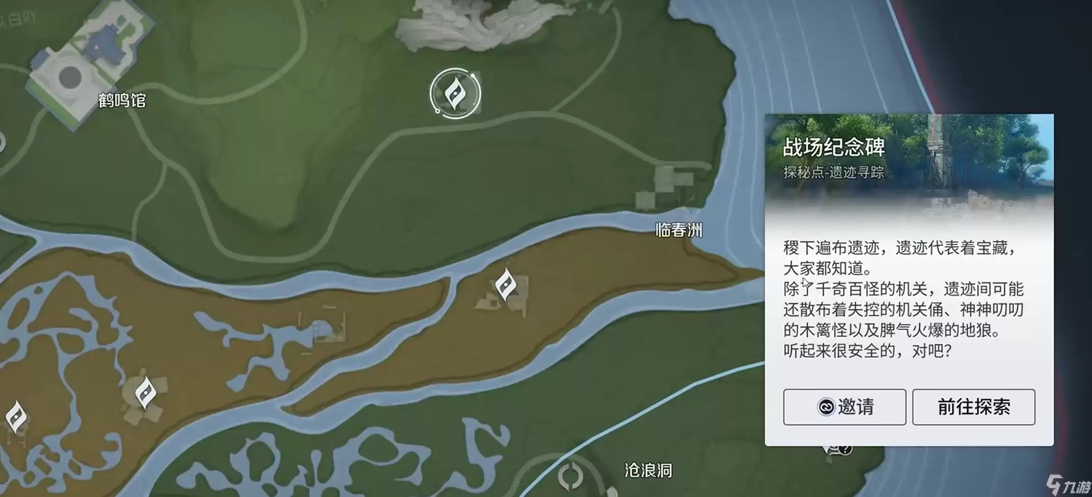 传送过去之后往西南走,找到"战场纪念碑"这个点。