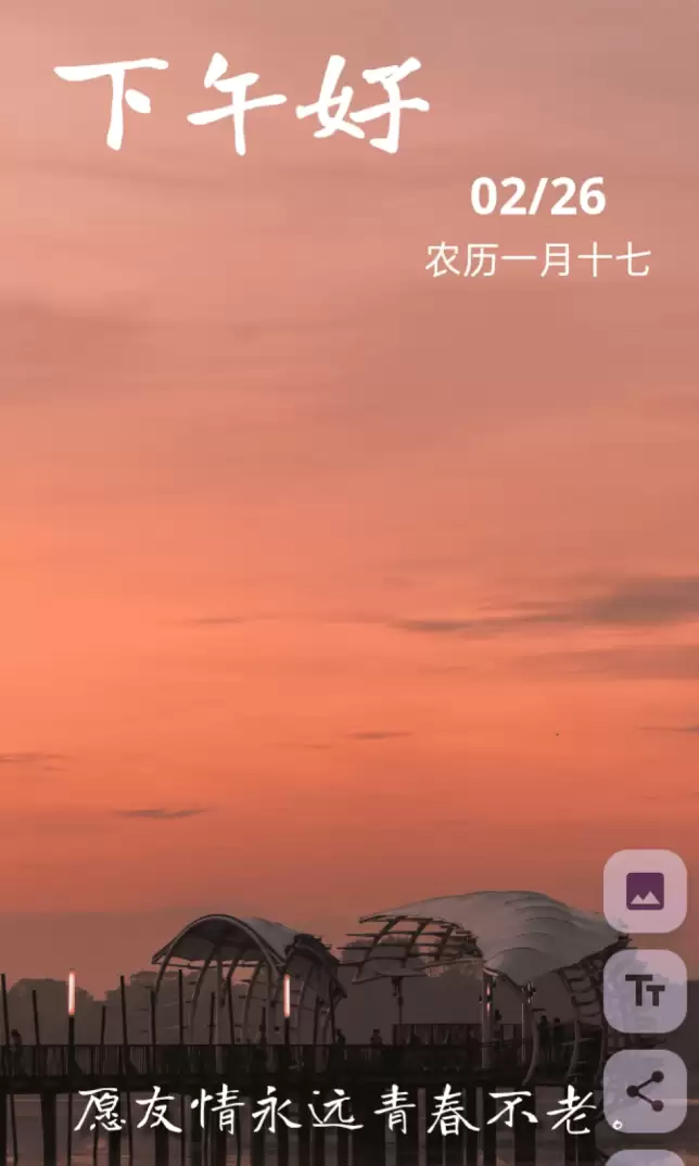 内置了近万张不同主题的高清图片,涵盖古风意境、节气物候、都市生活、自然风光,都是原创优质素材。文案资源包括早安祝福、晚安问候、友情文案、哲言、唐诗宋词、佛语人生等几千种内容,满足不同场景的问候需求。核心功能是文字、文案、图片三合一快速生成,几秒内就能完成专属早安图制作。
