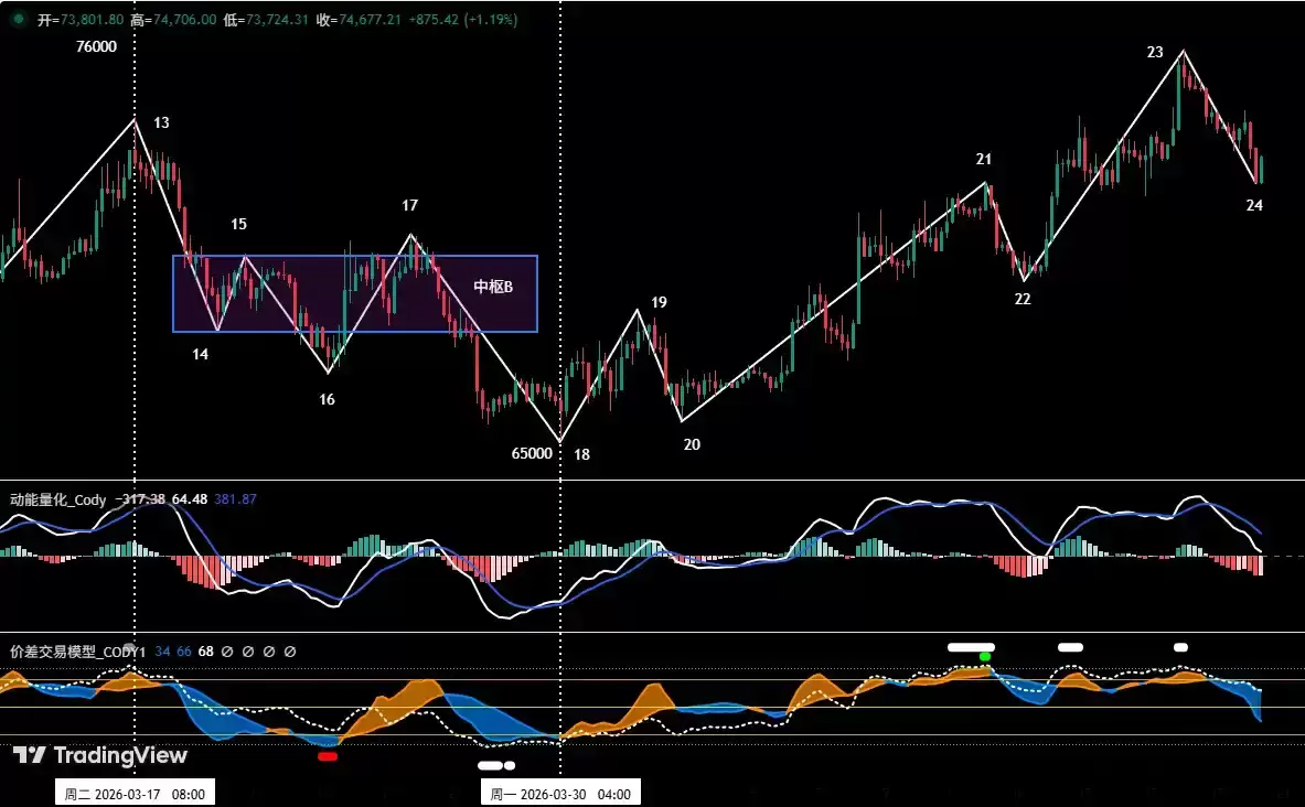 - 第一支撑位:73,500美元附近(前期重要支撑位)