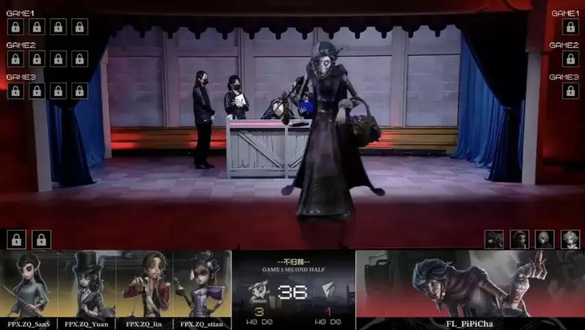 - FPX.ZQ求生者:火灾调查员、“囚徒”、“哭泣小丑”、机械师(BAN:“台球手”、“跛脚羊”)。