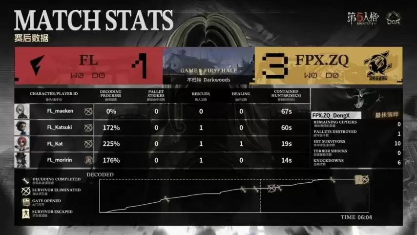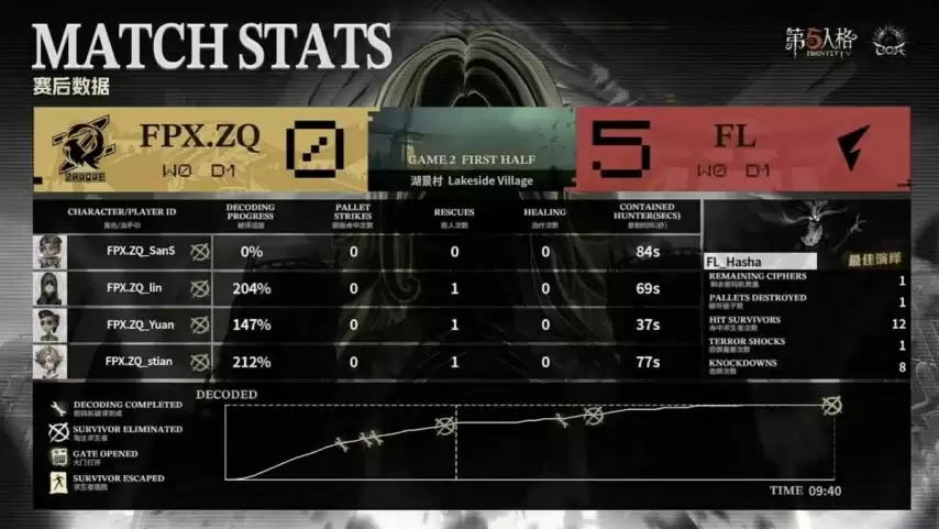 第一局比赛上半轮:FL求生者 vs FPX.ZQ监管者