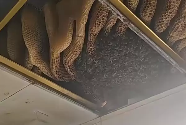 据了解,这户人家已经四五年没装过热水器了,厨房原来的热水器排气孔,一直闲置着没封闭,蜜蜂就是从这个孔钻进去,在吊顶里安了家、筑了巢。