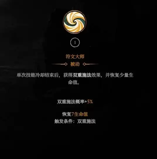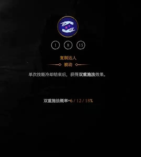 精灵法师的职业特性拥有双倍施法几率,所以我们可以围绕双倍施法来构筑,首先自己的职业技能【复制达人】就可以提升双倍施法几率,所以必点,还有一个双倍施法加血的可以提升生存。