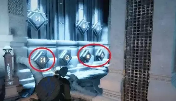 集齐石头后,返回中央的谜题区域。地上有几个带有红圈标记的板块。