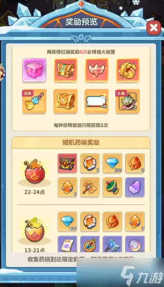 玩法还是老样子:8口药锅,每次炼药随机+1-7点,超过24直接炸,至少炼3次才能收,目标就是22-24点红锅。
