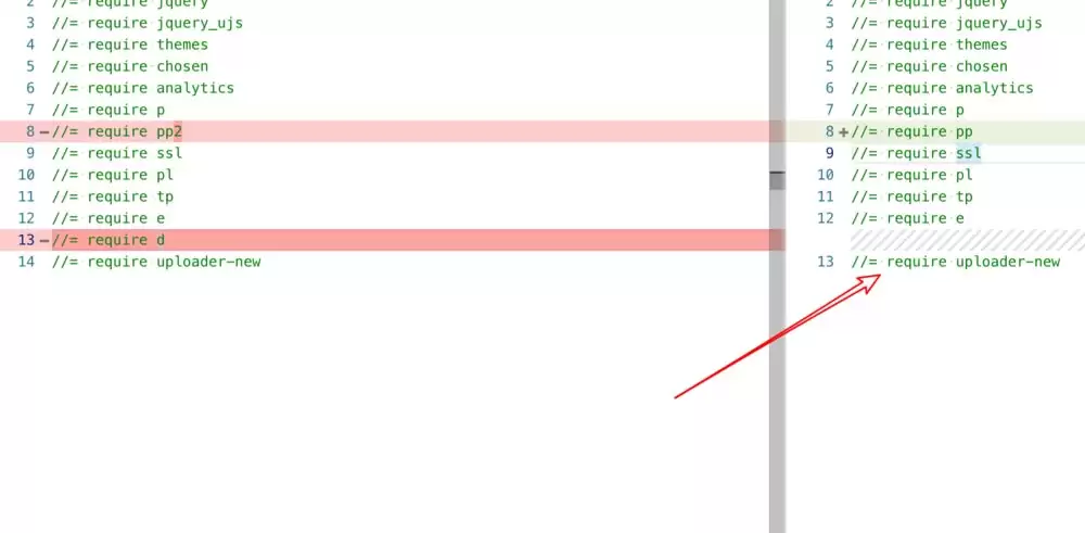 如果文件改动的地方比较多,手动滚动查找会有点麻烦。别担心,注意看界面右上角,那里有两个非常实用的导航按钮:一个指向左,一个指向右。它们的功能就是“跳转到上一个差异点”和“跳转到下一个差异点”,能帮你高效地遍历所有修改。