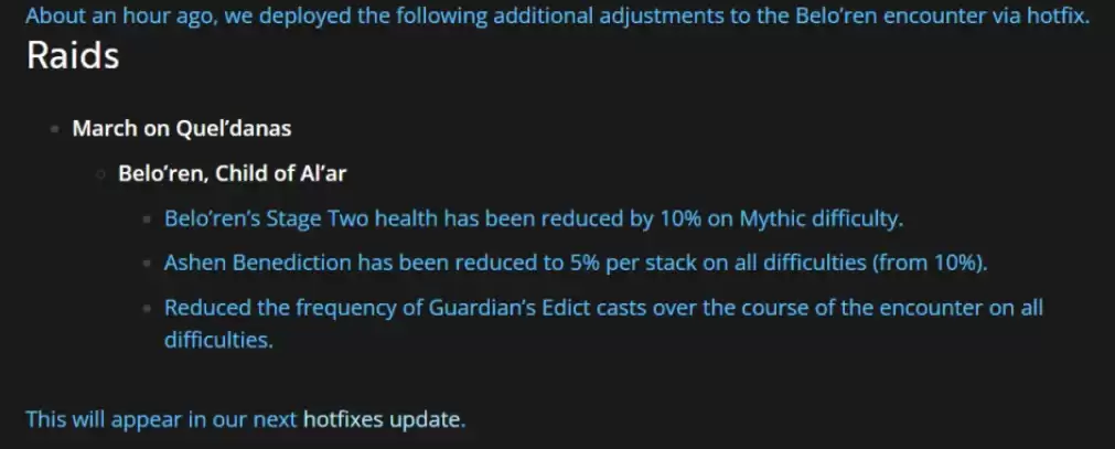 《魔兽世界》【正式服】史诗难度“贝洛朗,奥的子嗣”已削弱