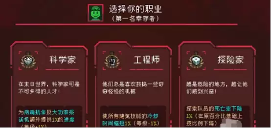 由于当前游戏还并没有正式公测上线,只是开启了预约通道,因此无法正常下载,不过点击上方链接就能够直接完成预约,关于游戏的上线消息以及当前的全新资讯都会第一时间推送,同时也能够获得超丰富的预约礼包。在进入游戏之后,我们可选择适合自己的职业,包括很多,比如白领、工人,又或者是农民,除此之外,也可以选择进阶职业,包括科学家,在超大的末日世界当中是不可多得的人才,为病毒抗体做较大的贡献。同时也可选择探险家来到危险的地方寻找各类资源寻找到生存之路。