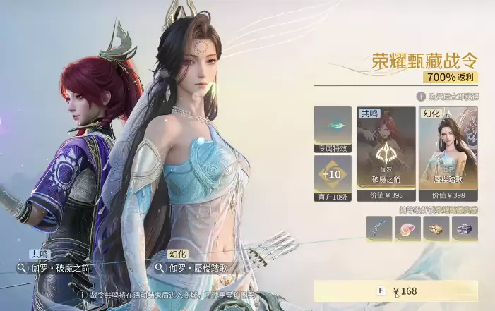 游戏中设有大量限定主题时装,穿戴后可显著提升角色视觉表现力。获取途径主要为“祈愿系统”,每次祈愿需消耗指定数量的游戏内材料。当材料耗尽时,可通过充值购买补充。商城中材料包按梯度定价,最低档位6元,最高档位648元。此外,游戏推出“荣耀珍藏战令”,售价168元,激活后可立即获得两名限定角色,并解锁专属特效、动态头像框及持续性资源奖励,同时在特定战斗中触发“共鸣”机制,实现角色形态转化。