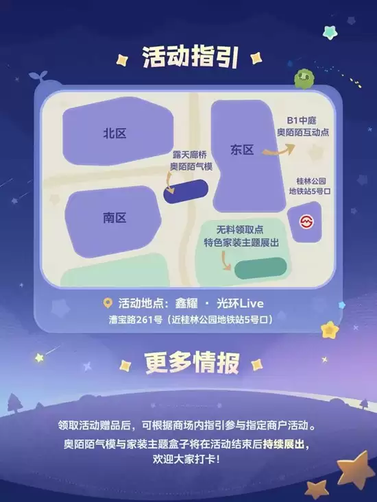 作为《星布谷地》的首次线下活动,本次打卡内容与游戏第二次测试星旅测试深度联动。活动选址位于上海鑫耀光环及桂林公园地铁站5号口绿地,整体活动周期覆盖4月中下旬至5月,5月1日为重要开启节点。