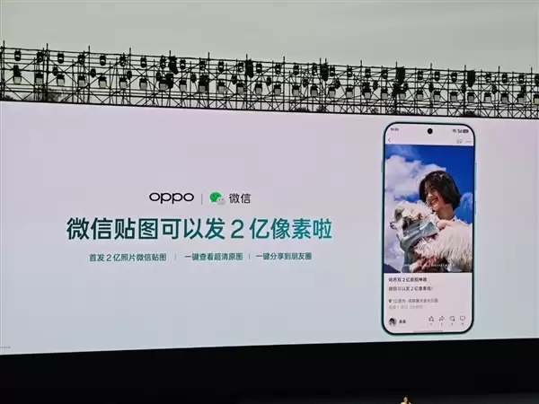 在社交生态的打通上,OPPO这次与微信进行了深度合作。现在用户通过微信贴图可以直接发送2亿像素的超清照片,并支持一键查看超清原图以及分享至朋友圈。
