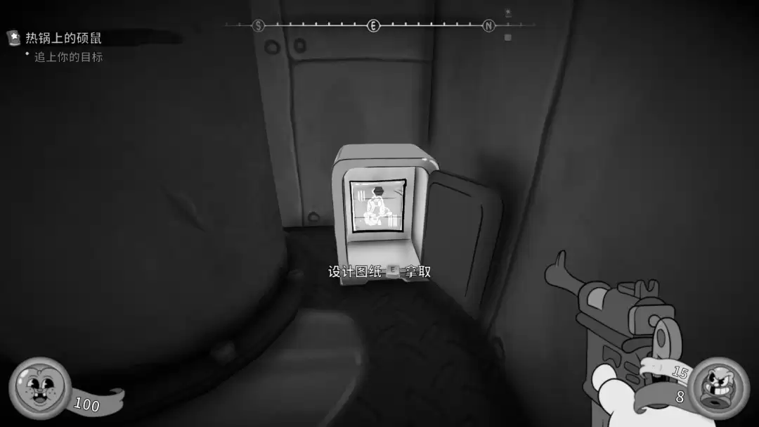 拿到第二本漫画后,继续向前探索。你会进入一个相对独立的小房间,注意观察房间内水管旁边,那里就静静地躺着一份珍贵的蓝图。