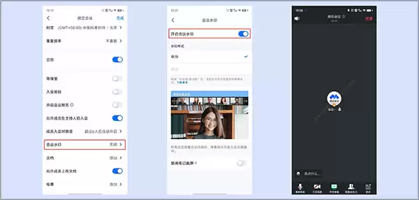 会议水印是防止信息截屏泄露的有效手段。开启方式有两种: