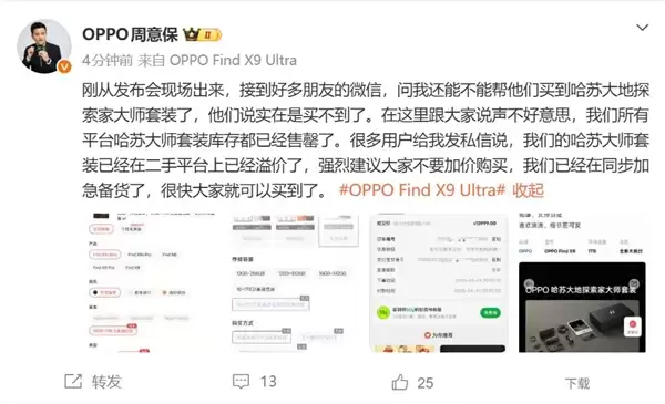 11999元!OPPO Find X9 Ultra哈苏大地探索家大师套装闪电售罄:黄牛加价卖