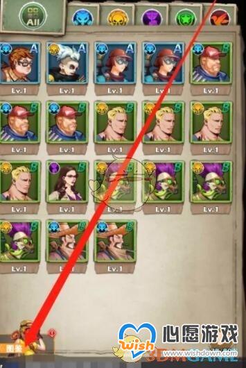 1、进入手游,点击图鉴图标,打开图鉴功能界面