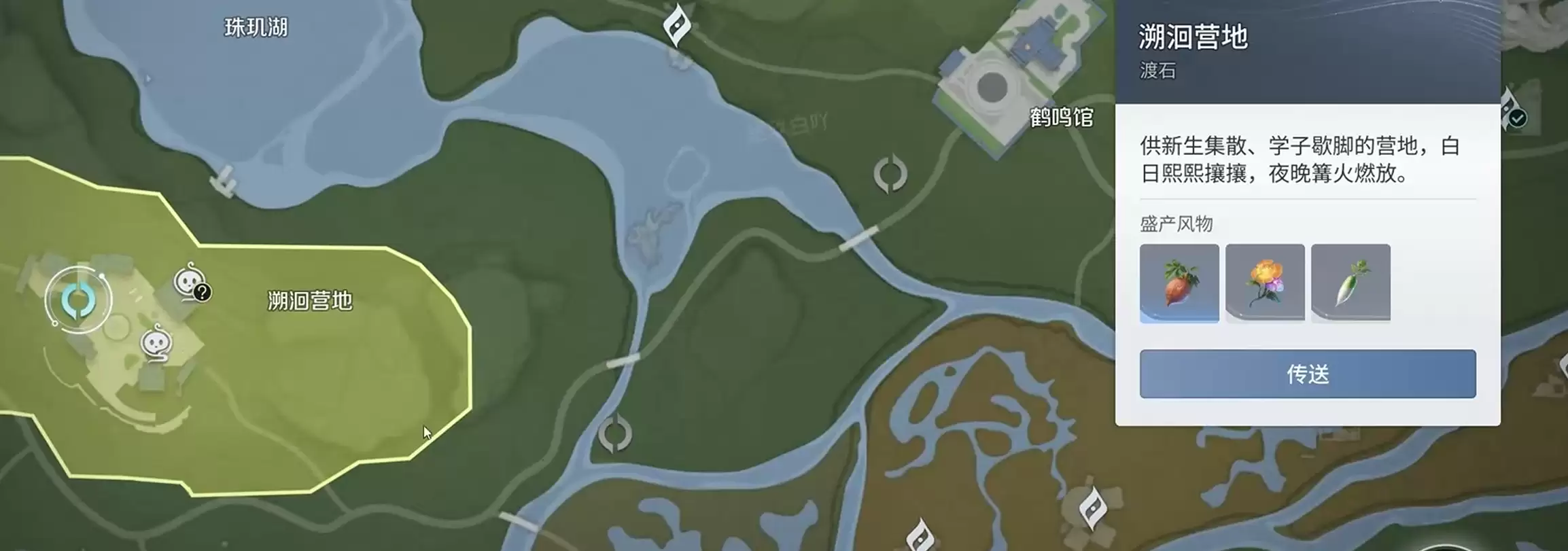 首先,打开地图,定位到“鹤鸣馆渡石”传送点。