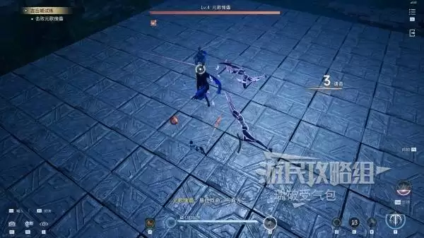 战斗过程中,场地上的刀刃攻击也需要留心。其实只要观察地面上出现的紫色光效,就比较容易预判和躲开。