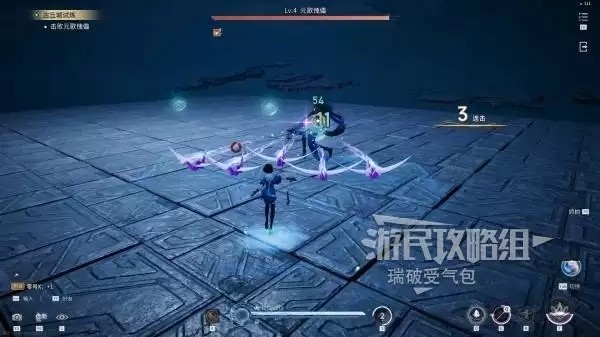 跟着指引做就行:利用元流之子的完美闪避接强化普攻,轻松让BOSS陷入第一次昏厥。