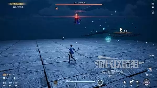 清完小怪,BOSS再度现身。继续跟随教学,使用T键的绝技来反制它的红光攻击。