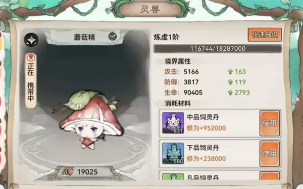 灵兽的境界提升相对直观,主要通过喂食特定的丹药来实现。